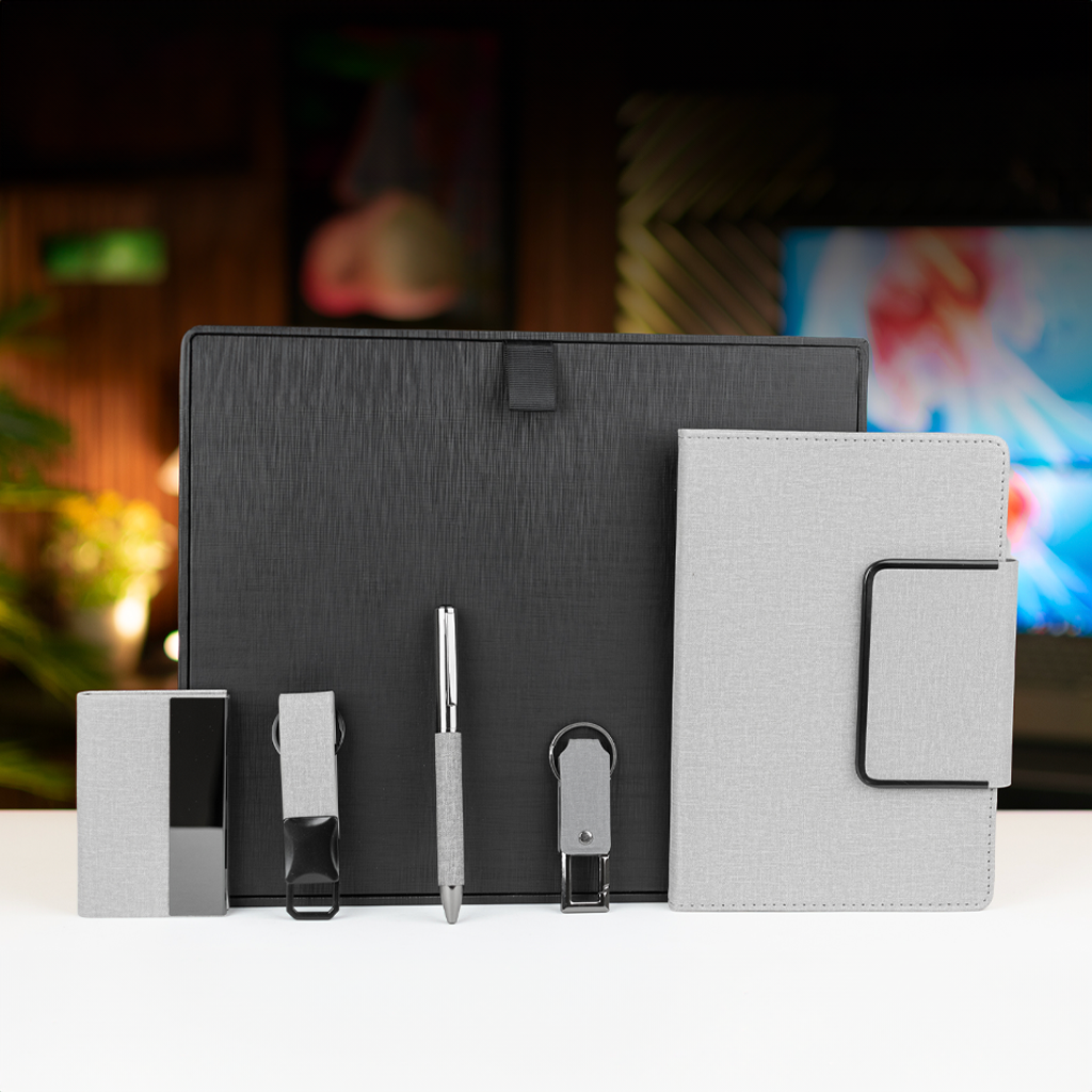 A premium wooden gift box with textured finish, sturdy design, and foam insert for secure, professional corporate gifting.