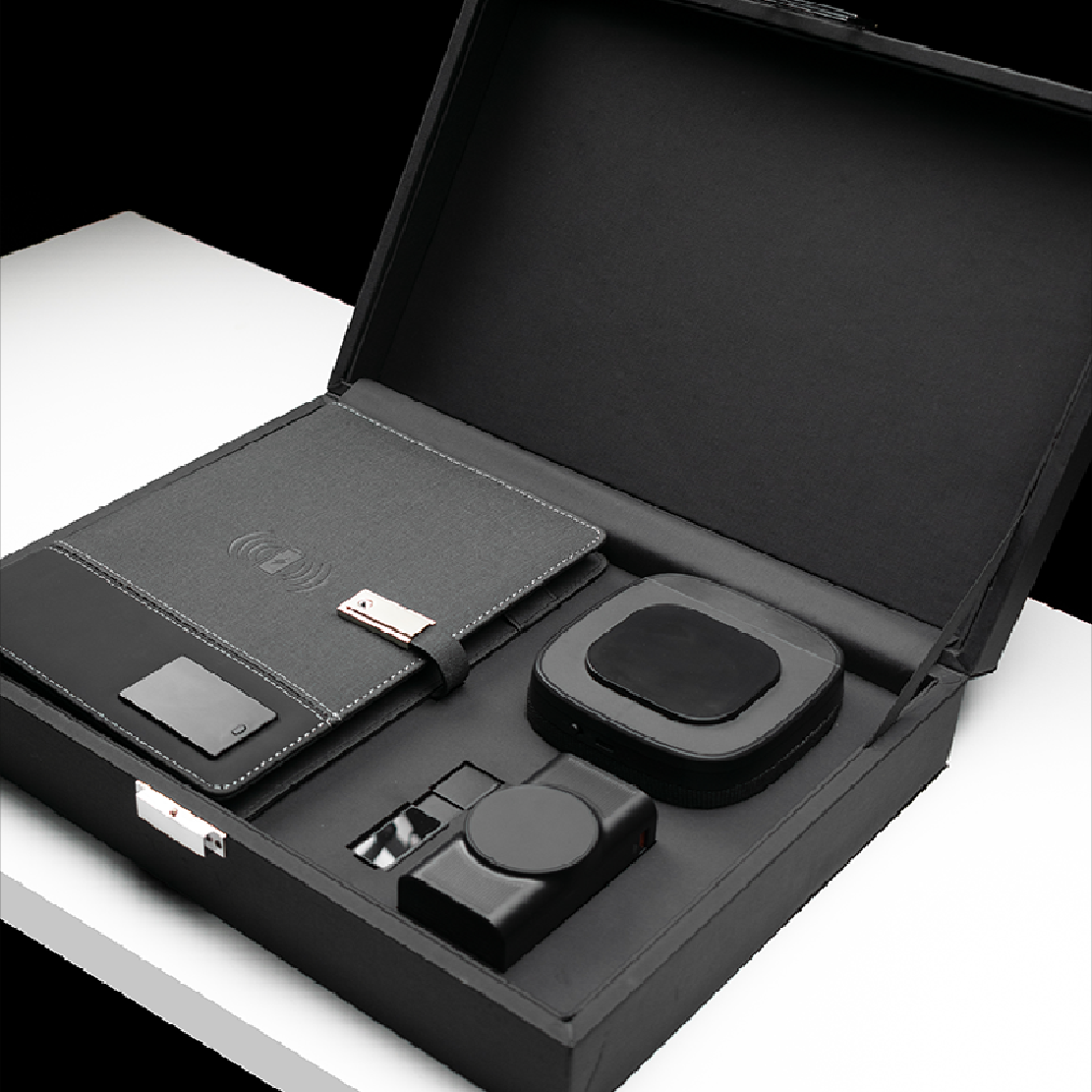 - Smart organizer with built-in 8,000mAh wireless power bank